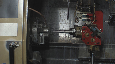 ![]() シャフト加工専用傾転式ローダー付きCNC旋盤 ワーク長50㎜から400mmに対応 |